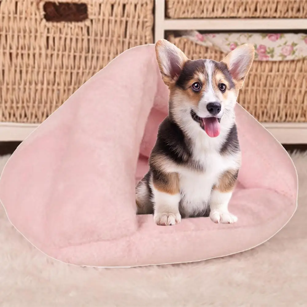 Pet Cave Bed Warming Cat Beds Dog Sleeping House Triangle Semi-Enclosed Warm Cat Nest Pet Tent Cave Bed for Small Medium Puppies